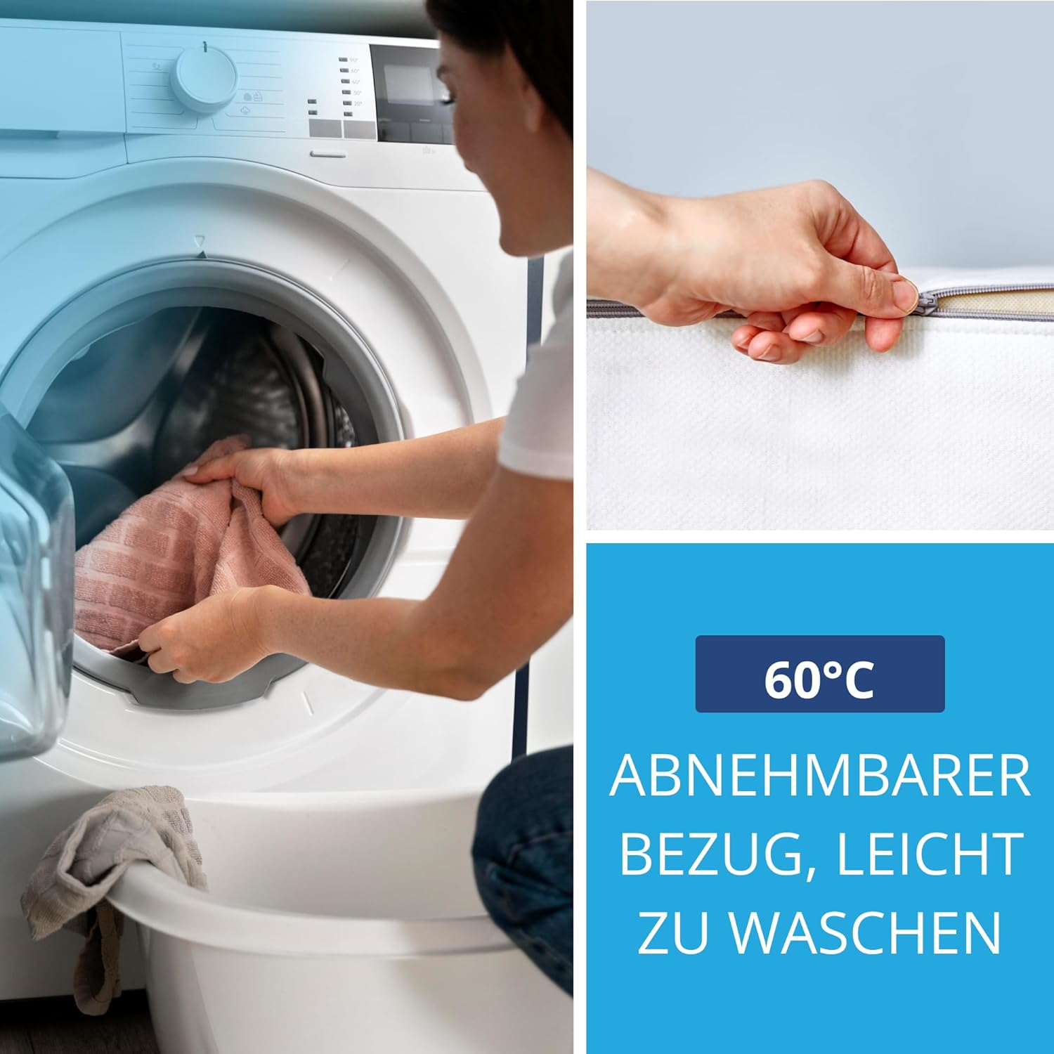 • Bezug: 100 % Polyester, teilbar mit Reißverschluss