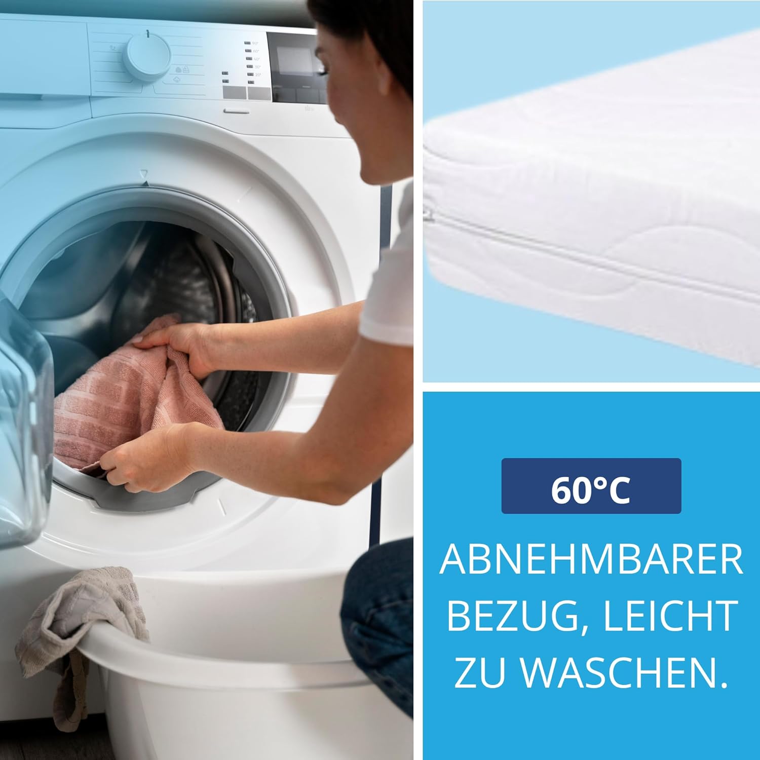 - 🧼 𝗔𝗯𝗻𝗲𝗵𝗺𝗯𝗮𝗿𝗲𝗿 𝗕𝗲𝘇𝘂𝗴 – 𝘄𝗮𝘀𝗰𝗵𝗯𝗮𝗿 𝗯𝗲𝗶 𝟲𝟬 °𝗖: Der atmungsaktive Mikrofaserbezug mit Reißverschluss ist feuchtigkeitsregulierend und hygienisch. Die Steppung mit Klimafasern sorgt für ein angenehm trockenes Schlafklima – ideal für Allergiker, sicher für Kinder und Erwachsene.